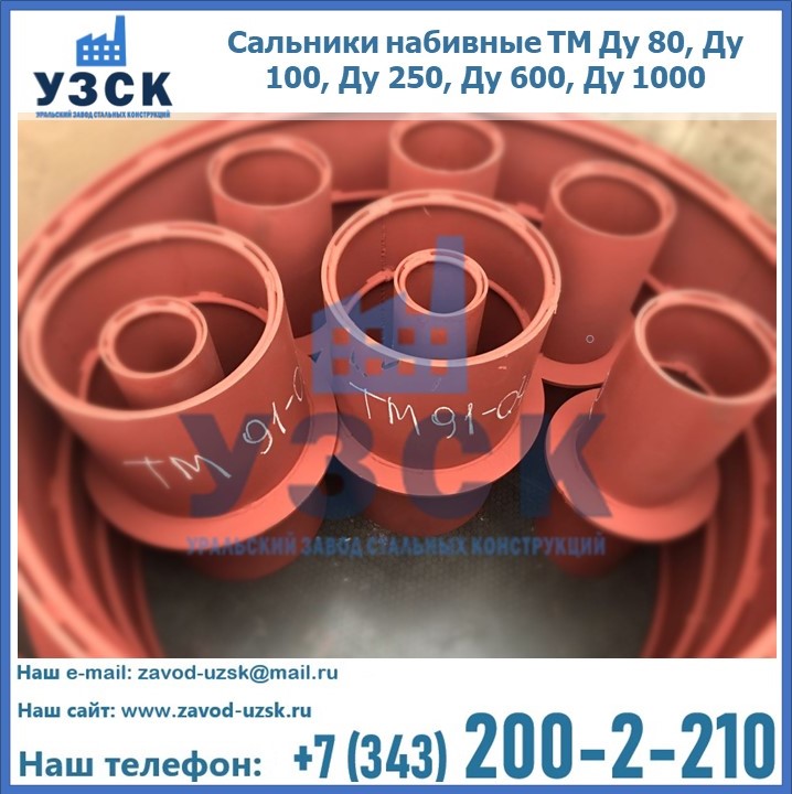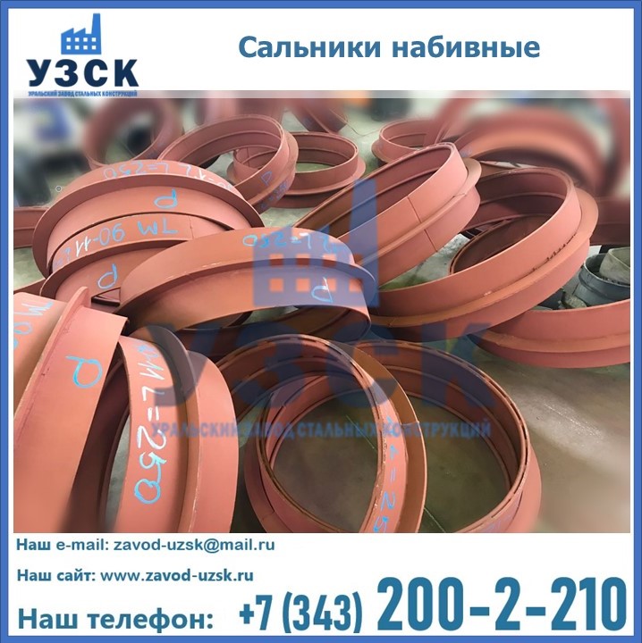 На производственных площадях Уральского Завода Стальных Конструкций в Арзамасе профессиональные сотрудники занимаются проектированием и разработкой различных закладных деталей, в частности осуществляется производство и реализация набивных и нажимных сальников. Все изделия, которые можно приобрести у нас, отвечают установленным требованиям по ГОСТу, а также прочей нормативной документации.